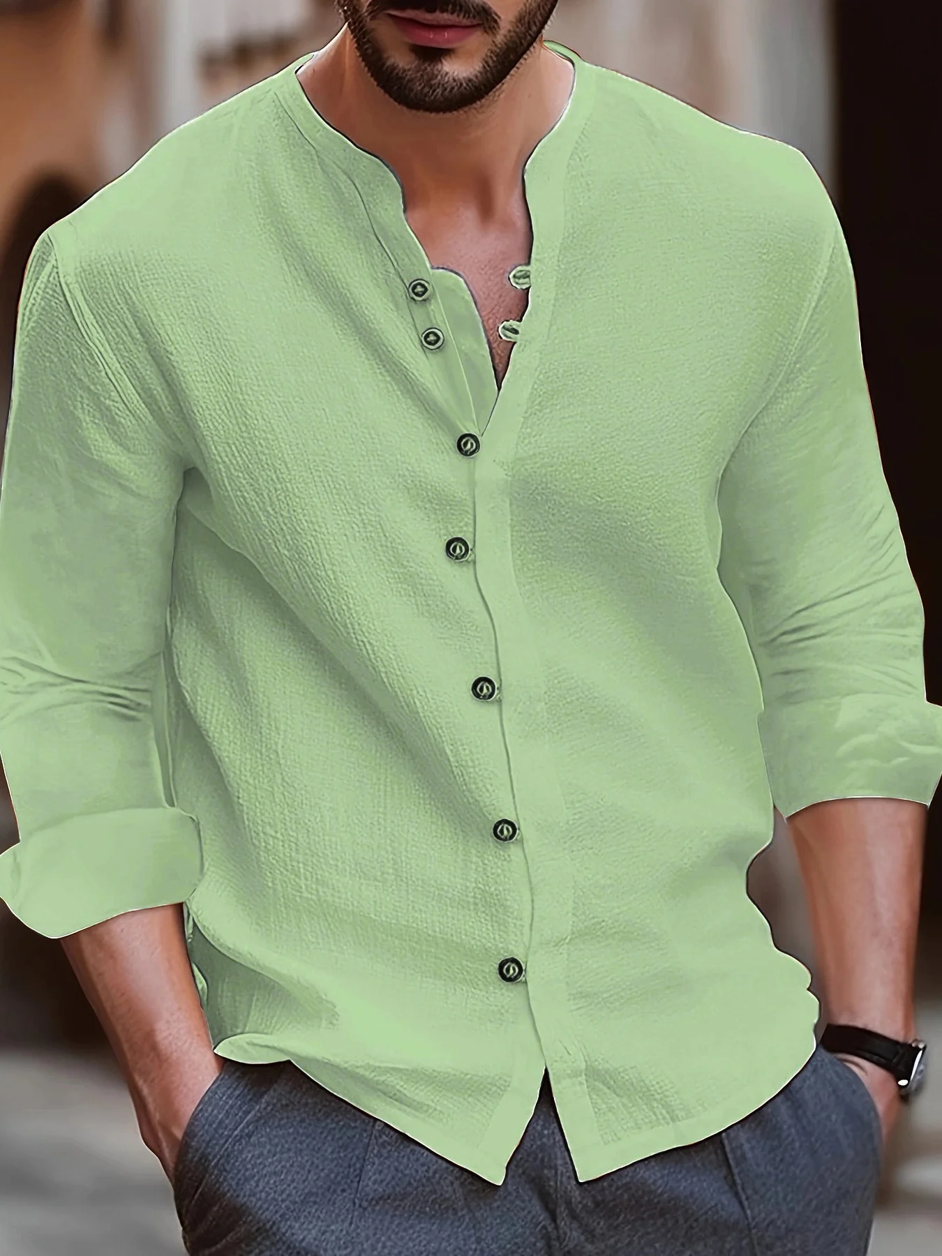 Men's shirts, stand-up collar shirts, fashionable and casual slim fit, solid color men's tops, outdoor shopping clothing S-3XL